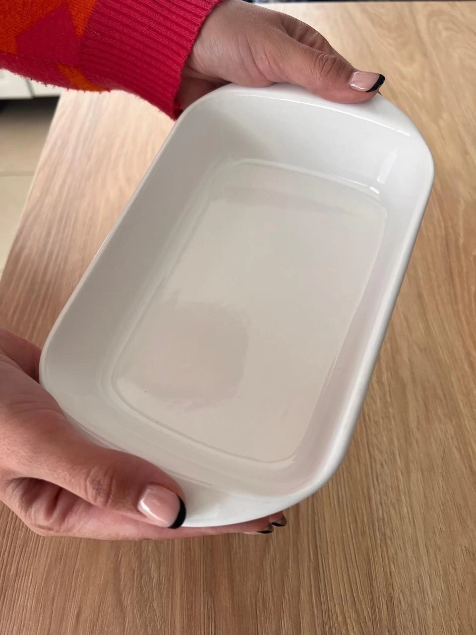 Fuente de cerámica blanca. Apta para horno y microondas.